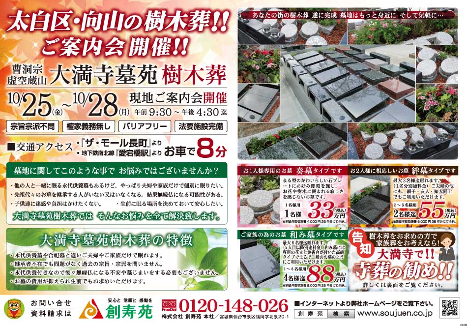 大満寺・花壇型樹木葬 墓苑見学会のご案内
