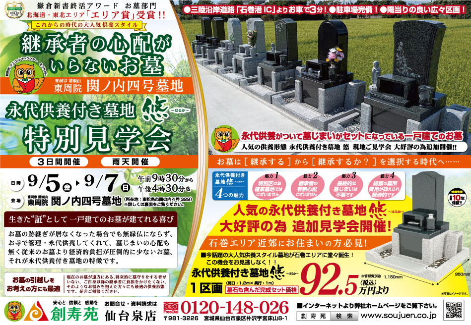東周院 関ノ内四号墓地・永代供養付き墓地〜悠〜墓苑見学会のご案内