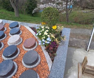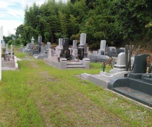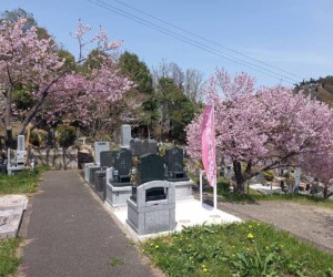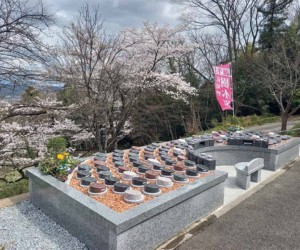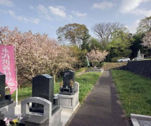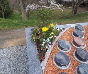 果樹園と季節のの花々に囲まれた平坦墓地